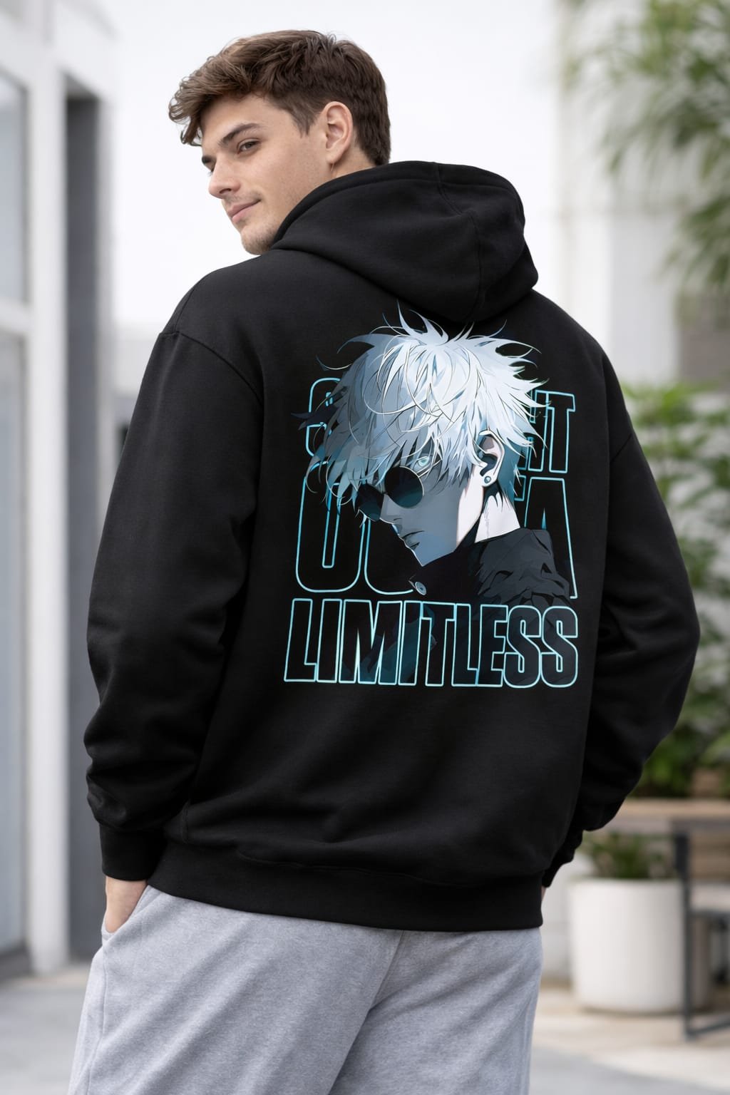 Unleash limitless style with our Anime Limitless Hoodie – Black Oversized Edition. Featuring a futuristic anime character print with glowing blue accents, this hoodie blends modern streetwear with anime aesthetics.
