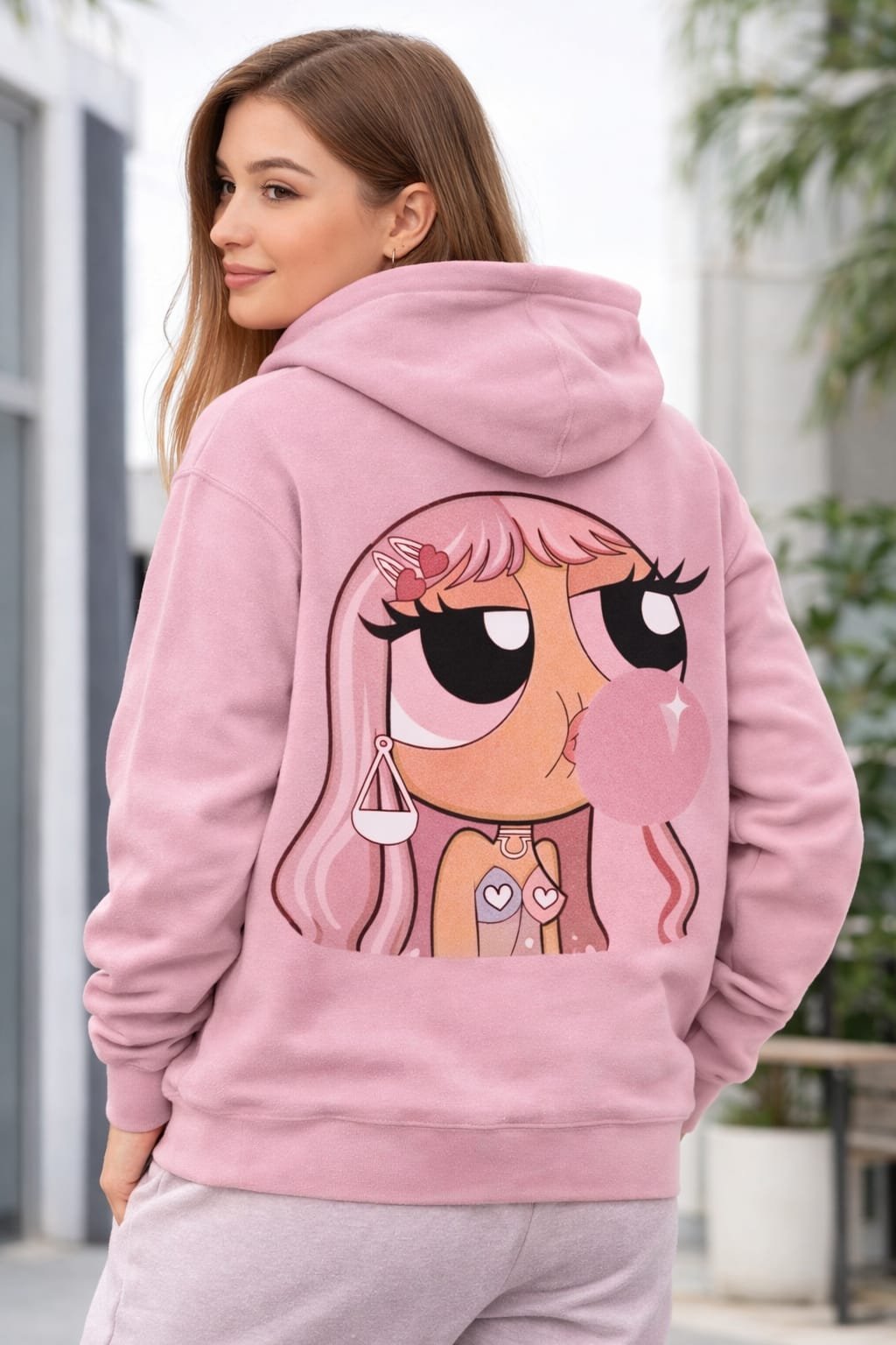 Kawaii Bubble Girl Oversized Hoodie – Pink Aesthetic